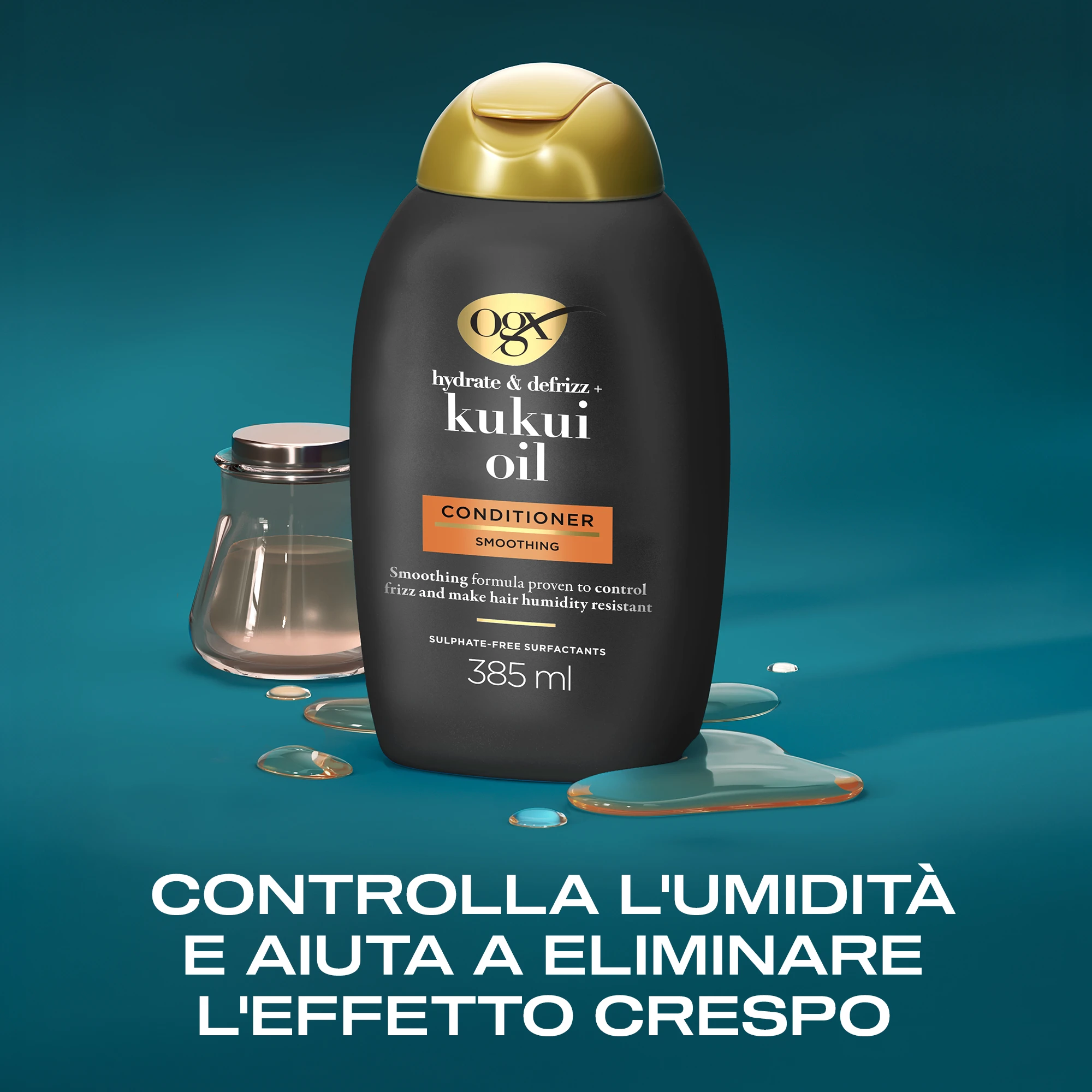 Nutri i tuoi capelli con questa formula esotica con olio di noce di kukui e un antico segreto hawaiano. Trova la combinazione perfetta per i tuoi capelli con OGX, ora con NUOVE formule potenziate con pH bilanciato per una detersione di qualità professionale che ti aiuterà a ottenere capelli più forti, più lucenti, meno crespi e lisci più a lungo. L'olio OGX Hydrate & Defrizz+ olio di kukui è una miscela resistente all'umidità che previene l'effetto crespo e aiuta a lisciare i capelli e a respingere l'umidità, creando al contempo una finitura lucida e scintillante.