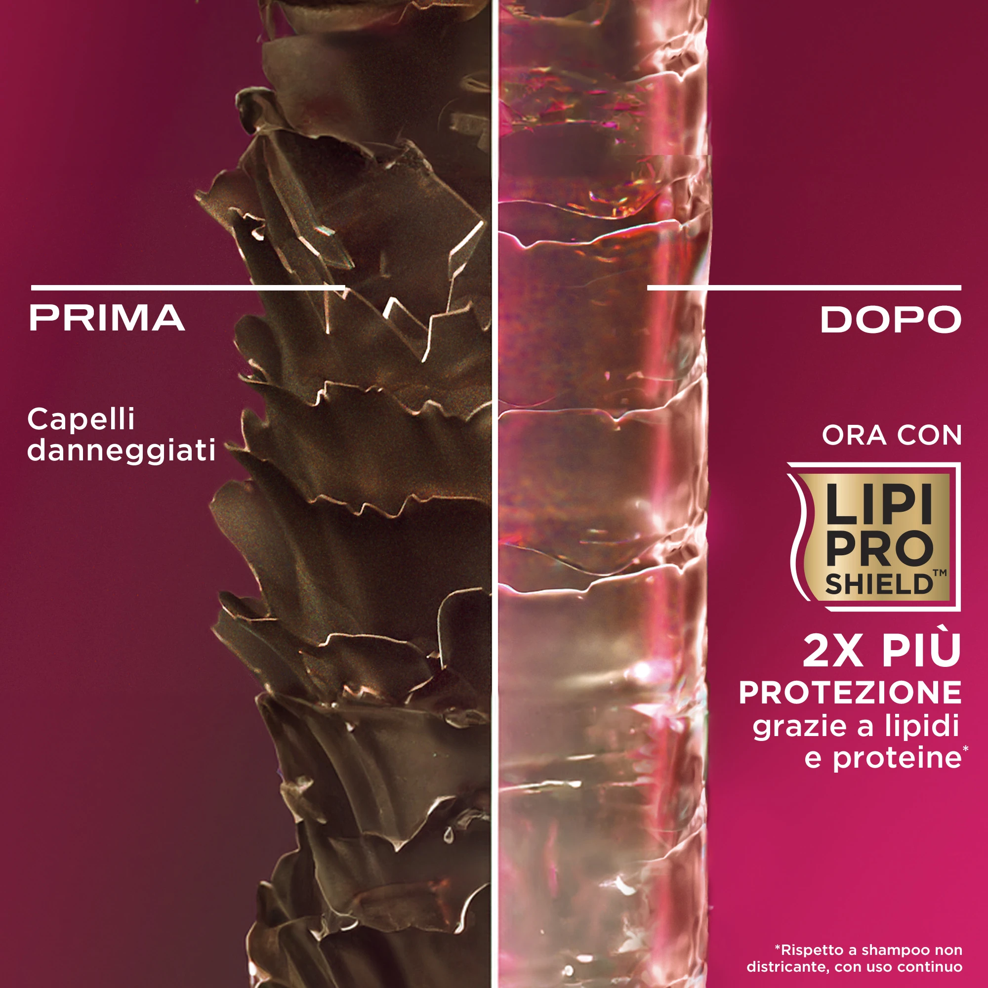Nutri, fortifica e rinforza i tuoi capelli con lo shampoo OGX Strength & Length Keratin Oil. Questo shampoo riparatore aiuta a prevenire la rottura causata da spazzolatura e styling, rinforzando le punte spezzate. Concepito per ridurre l'effetto crespo, questo shampoo fortificante aiuta anche ad aumentare l'elasticità, per poter mantenere i capelli più lunghi e forti, con una lucentezza luminosa. Questa miscela nutriente che ripara i danni è arricchita con olio di Argan che lascia i capelli lisci e condizionati, oltre che con proteine della cheratina, che aiutano a rinforzare i capelli e sono note per prevenirne la rottura. In più, il profumo trasforma l'insaponarsi in un'esperienza sensoriale completa, che lascia sui capelli un profumo irresistibilmente buono. Senza tensioattivi solfati, questo shampoo Keratin Oil contro le doppie punte rappresenta la bellezza pura e semplice. La nuova formula migliorata con tecnologia Lipi Pro Shield™ è ricca di lipidi nutrienti. La tecnologia brevettata deterge efficacemente rispettando la barriera lipidica e proteica per capelli dall'aspetto più sano. Per ottenere risultati migliori e per aiutare a lisciare i capelli, utilizzare con il balsamo OGX Strength & Length Keratin Oil e altri prodotti della nostra collezione fortificante per la cura dei capelli Keratin Oil. * quando si utilizzano sia shampoo che balsamo.